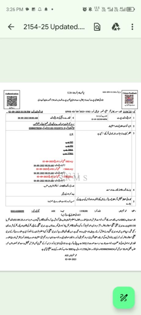 لاہور کرائم رپورٹر بھائی پھیرو پھول نگر سے پانچ سالہ بچی لاپتہ چاچا نے بھتیجی کی گمشدگی کی رپورٹ درج کروا دی سردا ر نعیم علی نے تھانہ پھولنگرمیں دی جانے والی درخواست میں بتایا کہ اسکی چار پانچ سالہ بھتیجی جسکا نام مسمات نور فاطمہ ہے نے بلیک کلر کی پتلون ااور پنک کلر کی شرٹ پہن رکھی ہے گھر سے لاپتہ ہے جسے تلاش کیا پر کہیں نا ملی شبہ ہے کہ جسے نامعلوم افراد نے ااغواء کر لیا ہے پولیس نے شہری کی درخواست پہ مقدمہ درج کر کے لاپتہ بچی کی تلاش شروع کر دی